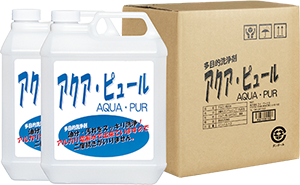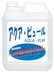 - アクア・ピュールは水を電気分解して作られたpH値13.2以上の強電解アルカリ洗浄水です。